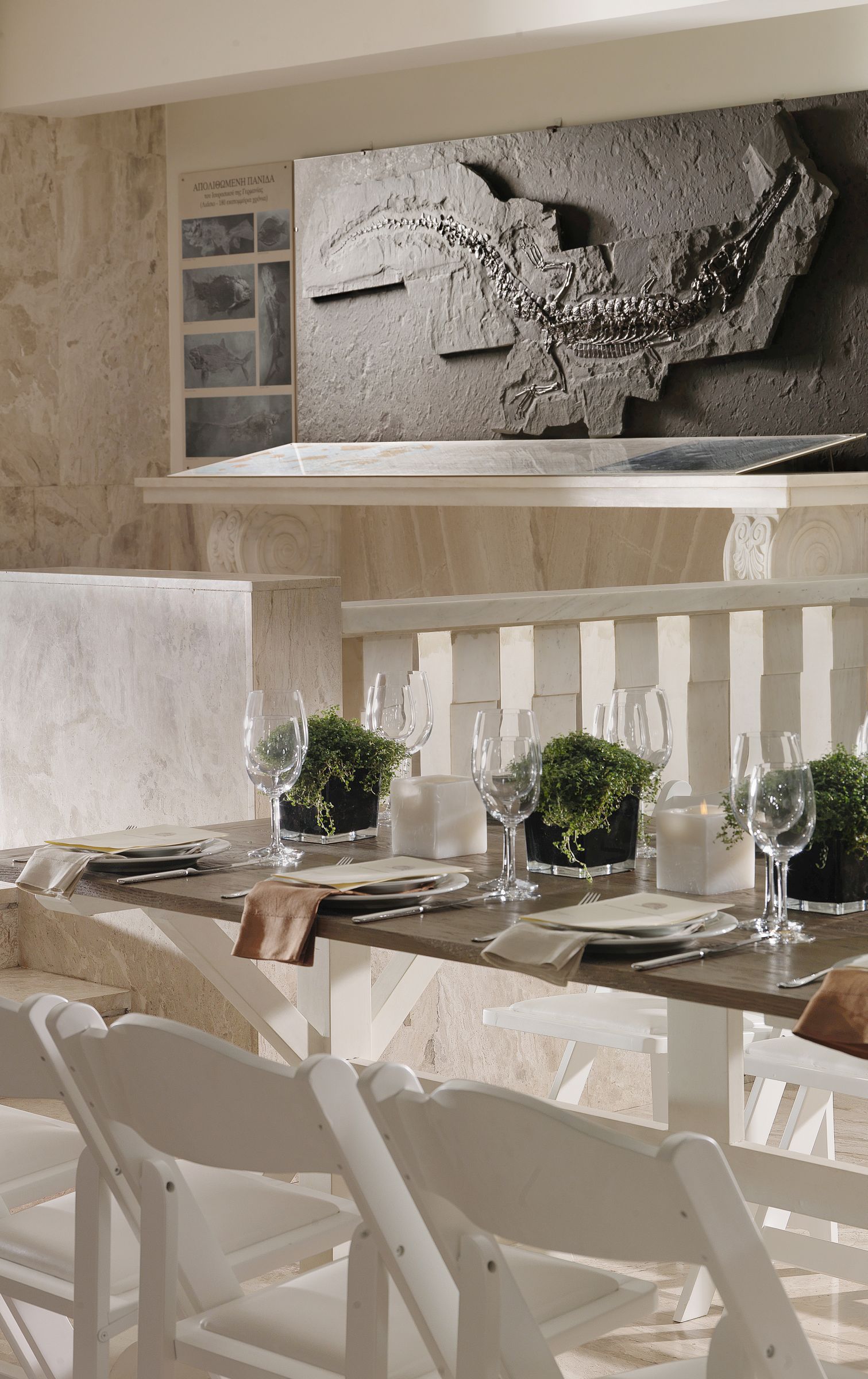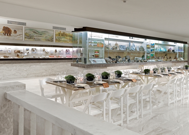 Δίπλα στον Κήπο και εντός του εσωτερικού χώρου του Museum Café – Restaurant (είσοδος από Λεβίδου 13) βρίσκεται η «Αίθουσα των Πετρωμάτων» (ένα εντυπωσιακό μέρος με εκθέματα που παρουσιάζουν τη γεωλογική εξέλιξη του πλανήτη), στην οποία μπορούν να φιλοξενηθούν γεύματα και δείπνα μέχρι και 70 καθήμενων ή μέχρι 100 ατόμων σε μπουφέ.